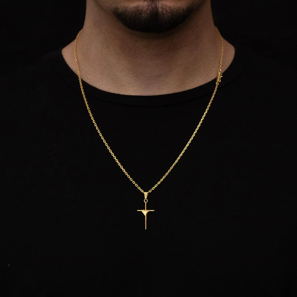 Adicione elegância e sofisticação com a corrente Cartier Cadeado de 2,5mm com pingente Crucifixo Enrolado, produzida à mão e banhada a Ouro 18k. A corrente apresenta um fecho canhão que é prático e garante mais segurança.