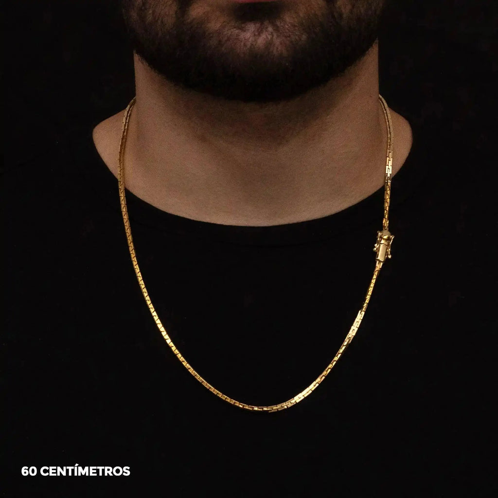 Adicione elegância e sofisticação com a corrente modelo Cartier Quadrada de 4mm, produzida à mão e banhada a Ouro 18k maciço. A corrente apresenta um fecho gaveta que é prático e garante mais segurança.