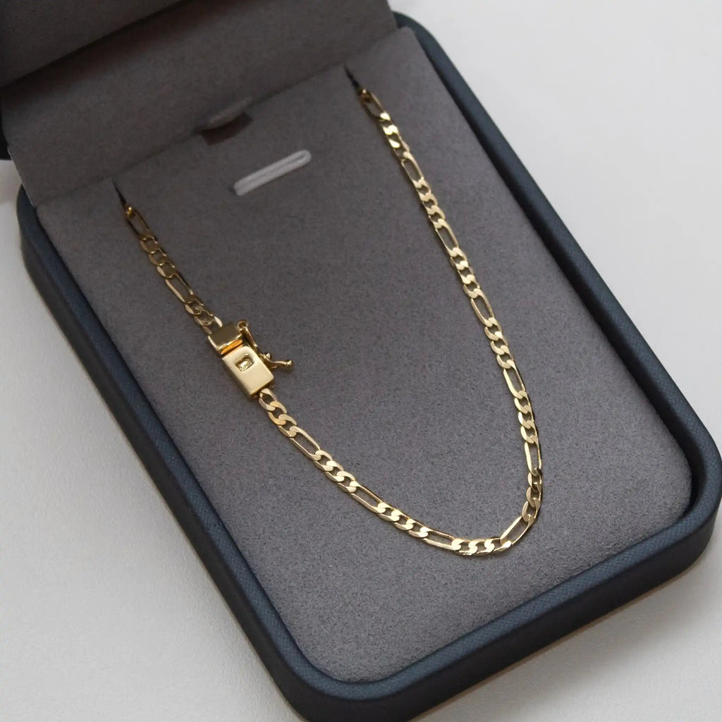 Adicione um toque de elegância e sofisticação ao seu visual com a Corrente Masculina Fígaro Banhada a Ouro 18k, com um design único de 3mm. Feita com materiais de alta qualidade, esta corrente é perfeita para complementar qualquer look com um brilho luxuoso e exclusivo.