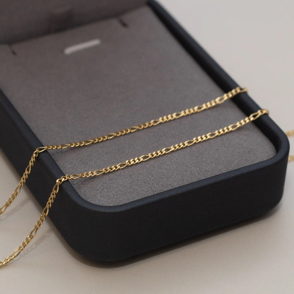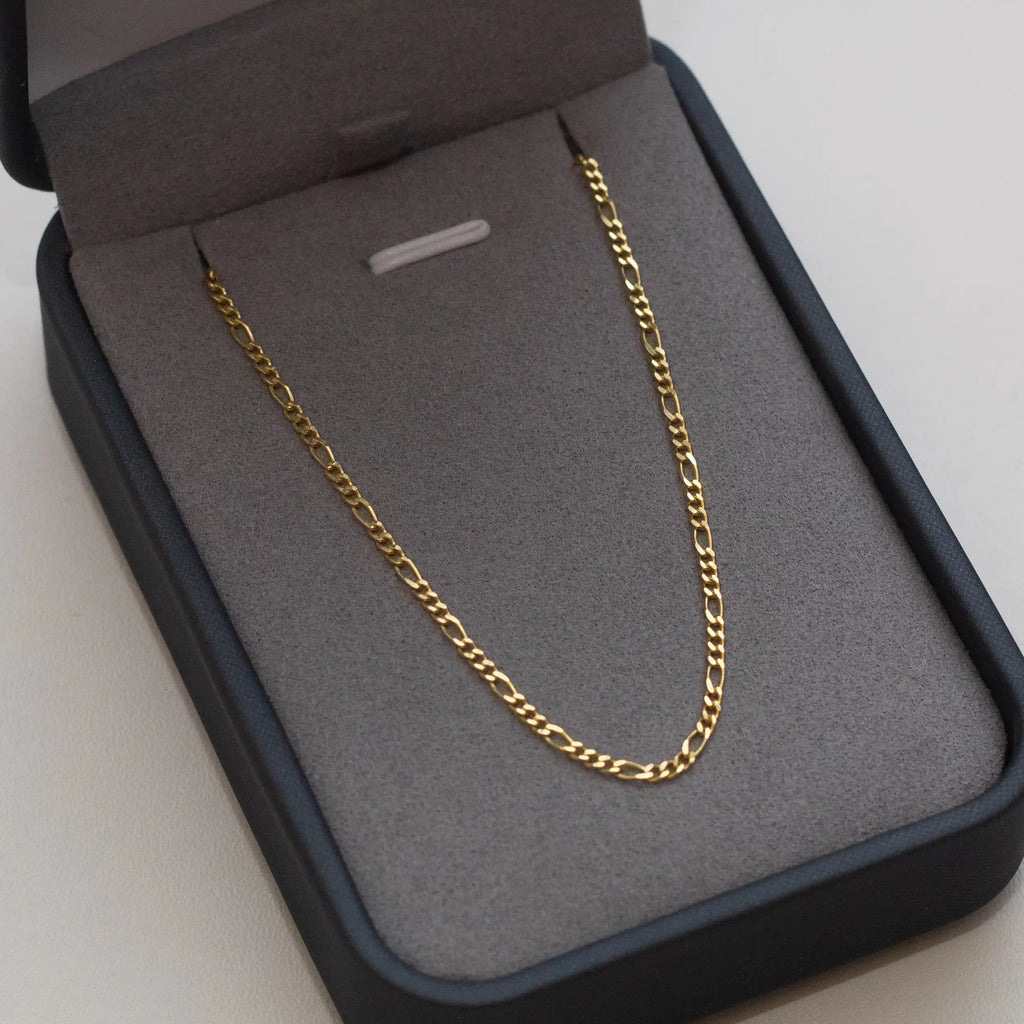 Adicione elegância e sofisticação com a corrente modelo Fígaro 3x1 de 2mm. Uma jóia minimalista de alta qualidade banhada a ouro 18k.
