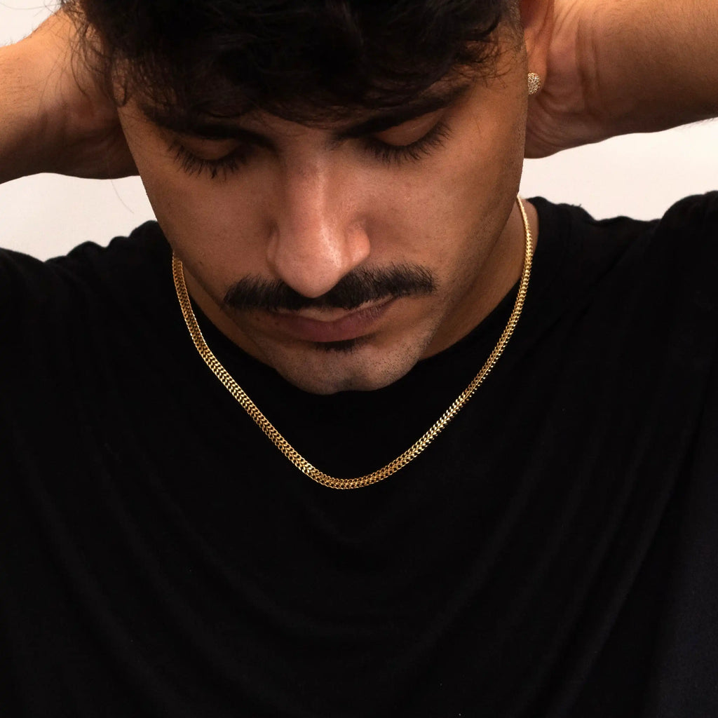 Aproveite o luxo e sofisticação com a Corrente Lacraia de 4,5mm Banhado a Ouro 18k. Seu design exclusivo e acabamento refinado garantem um visual elegante e distinto. Feita com banho de ouro 18k, proporciona durabilidade e estilo.