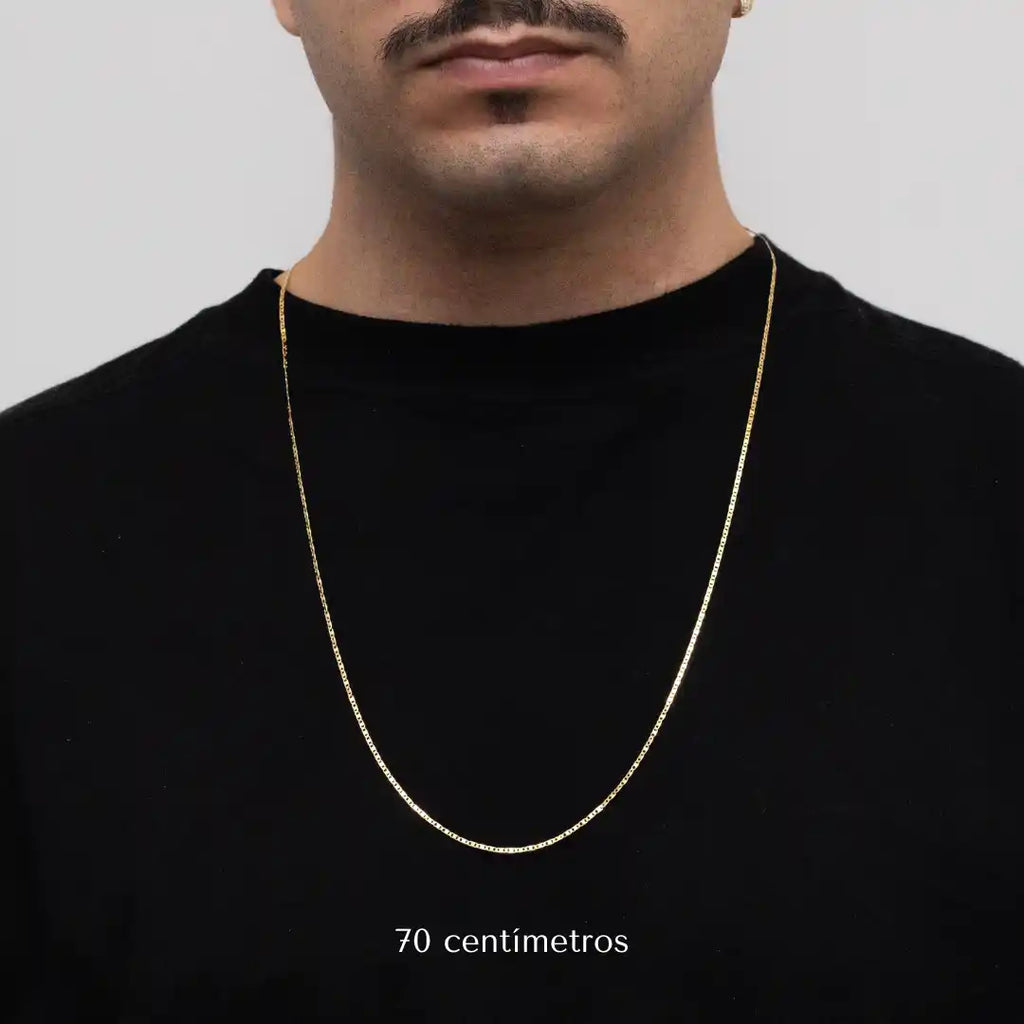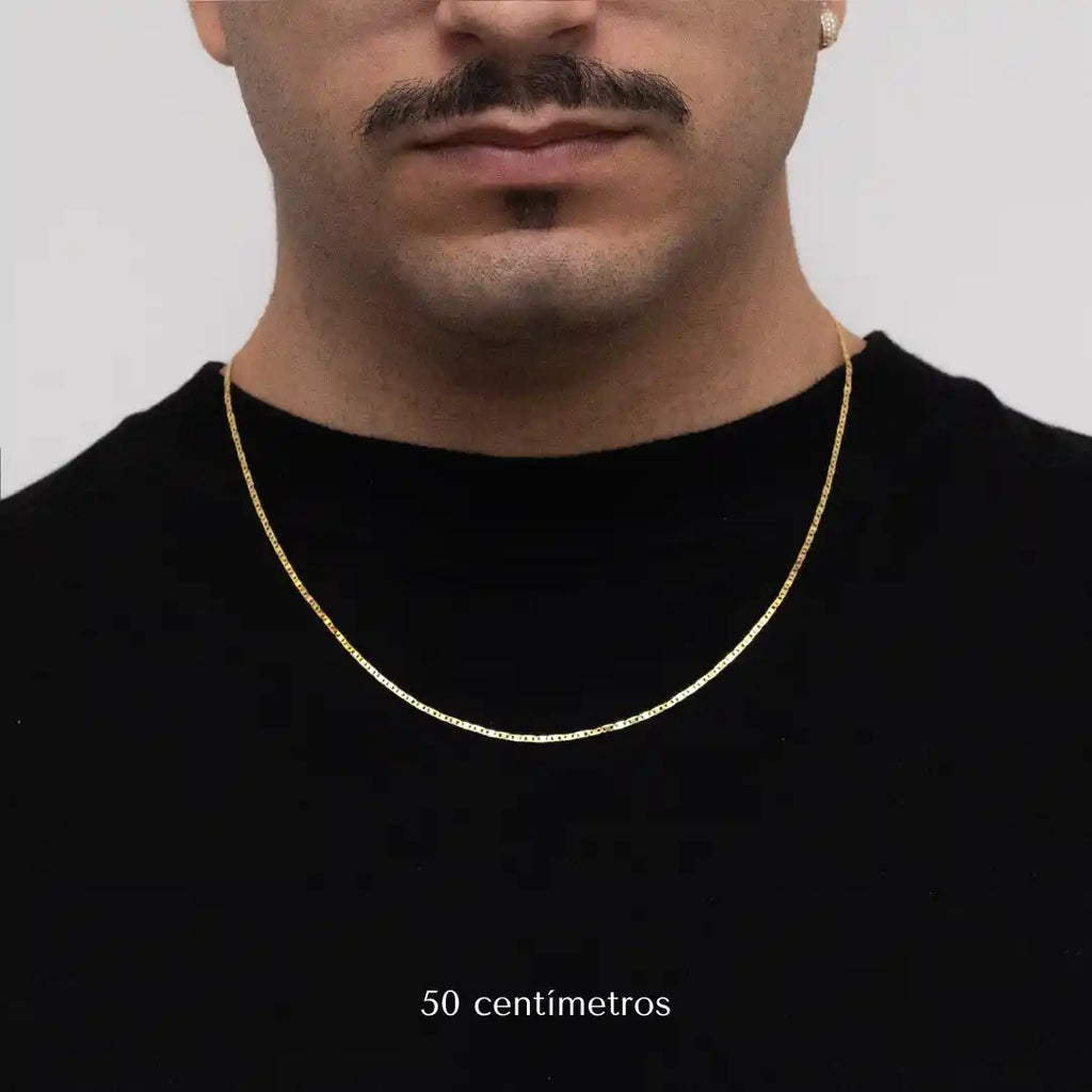 Descubre la sobria elegancia de la Cadena Piastrina de 2 mm con baño de oro de 18 quilates, ideal para el hombre moderno que valora el estilo y la sofisticación. Su refinado acabado garantiza durabilidad y brillo duradero, realzando cualquier look con un toque contemporáneo y clásico. Perfecta para el día a día o para ocasiones especiales, aporta un encanto sutil pero impactante a cualquier look masculino.
