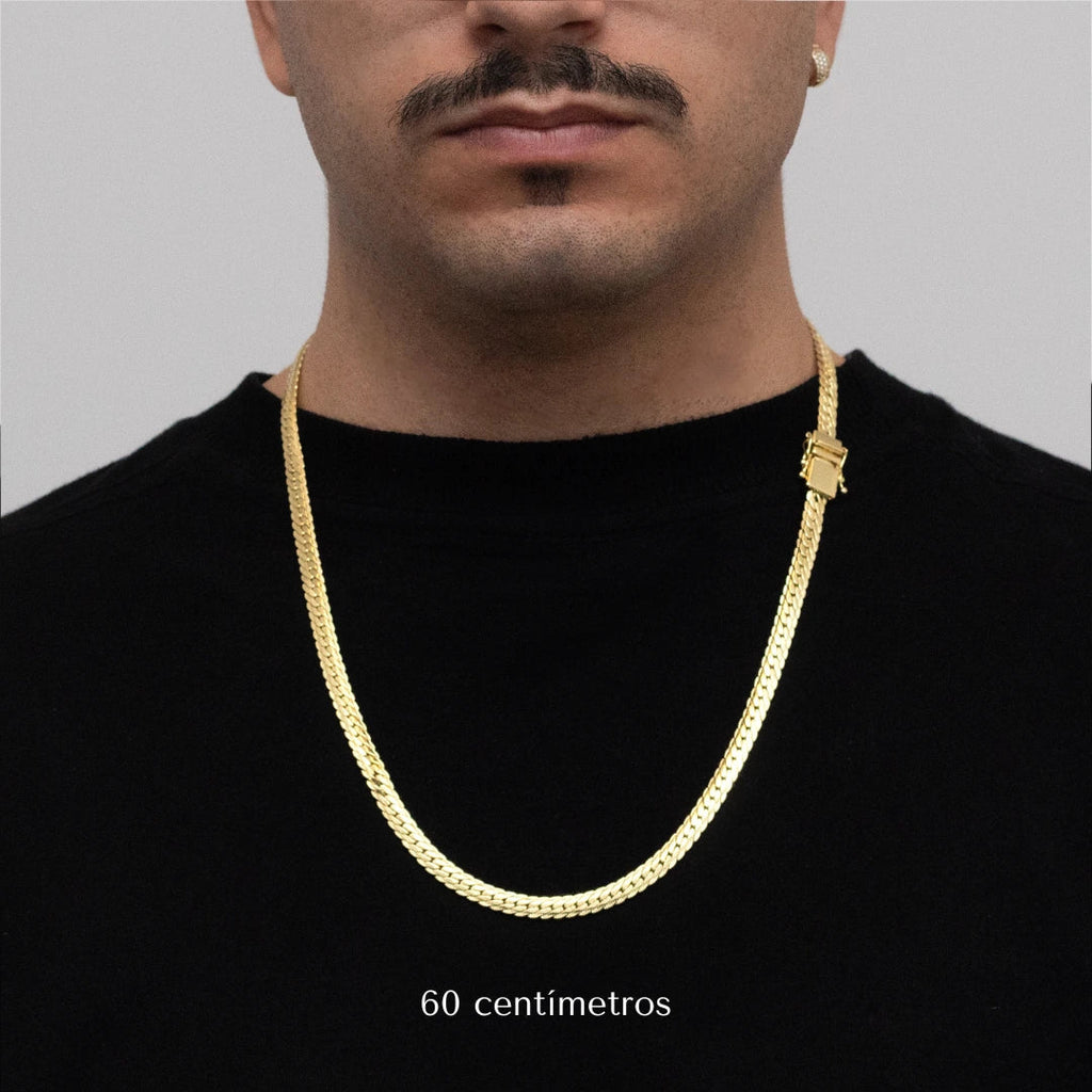 Exiba elegância com a Corrente Snake 6mm banhada a ouro 18k. Seu design sofisticado e acabamento impecável conferem um brilho duradouro, ideal para compor looks refinados. A espessura de 6mm proporciona presença marcante, perfeita para quem valoriza estilo e qualidade em acessórios.
