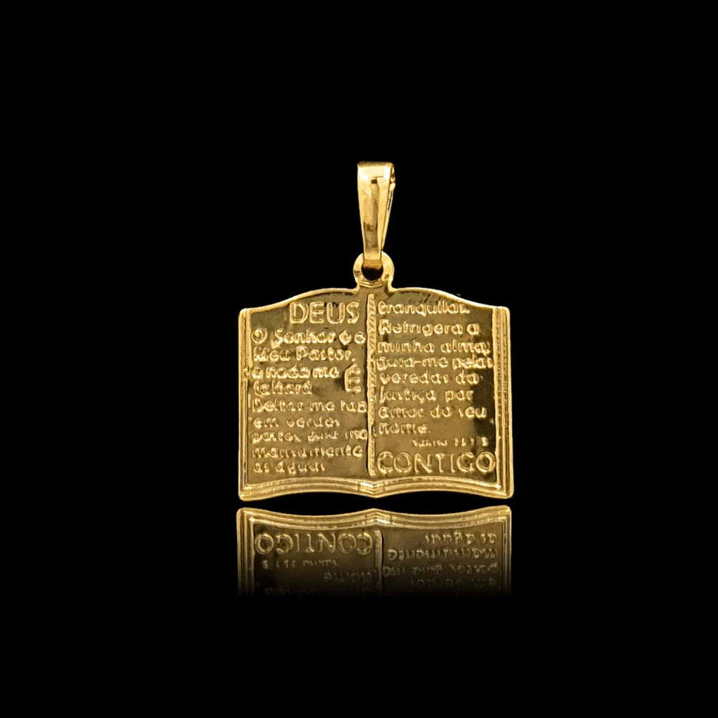 Exiba sua fé e devoção com o Pingente Biblia Banhado a Ouro 18k ideal para correntes mais de até 2 milímetros de espessura.