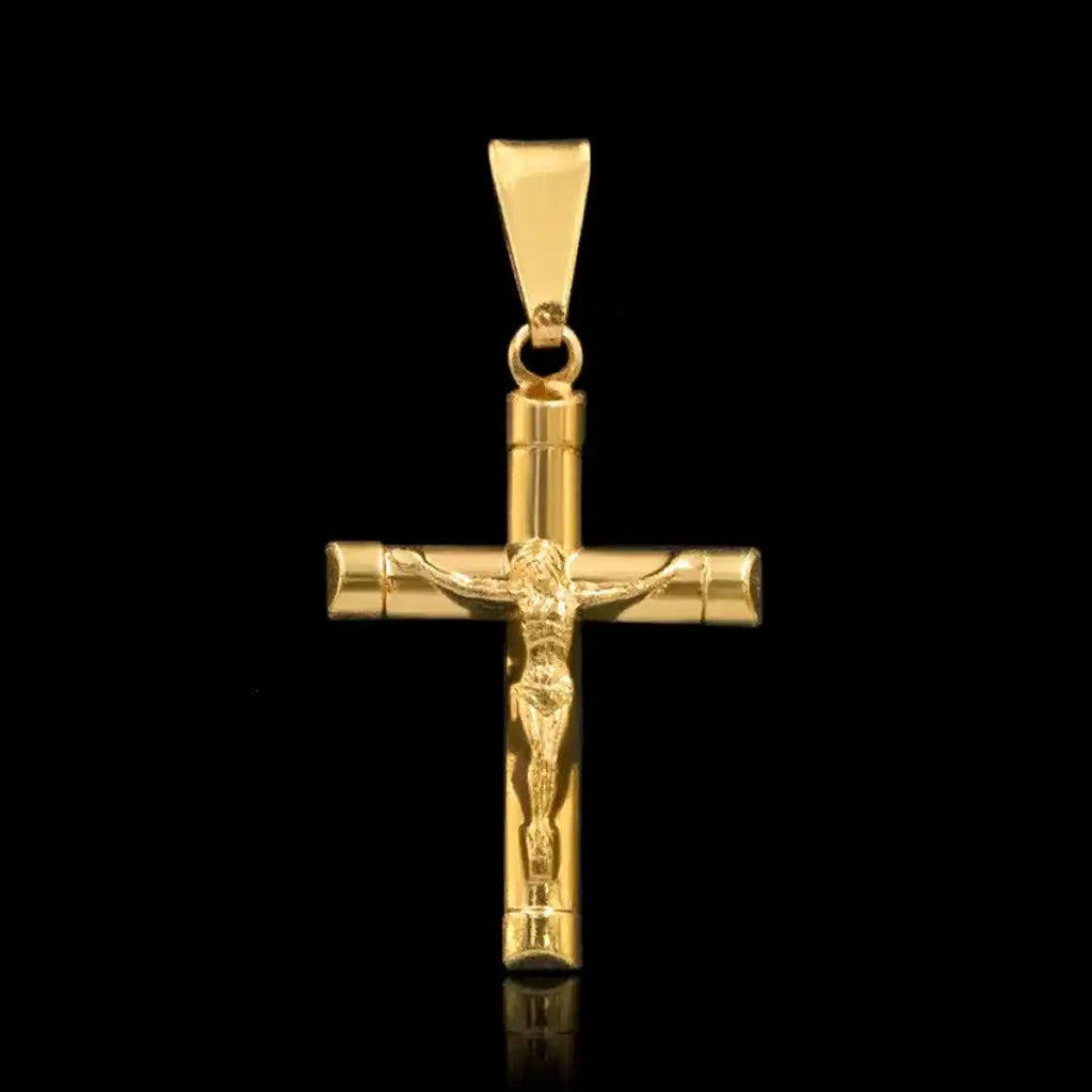 Eleva tu fe con el colgante de la cruz de Jesús bañado en oro de 18 quilates. Fabricado con materiales de alta calidad, este colgante es la representación perfecta de tu devoción.