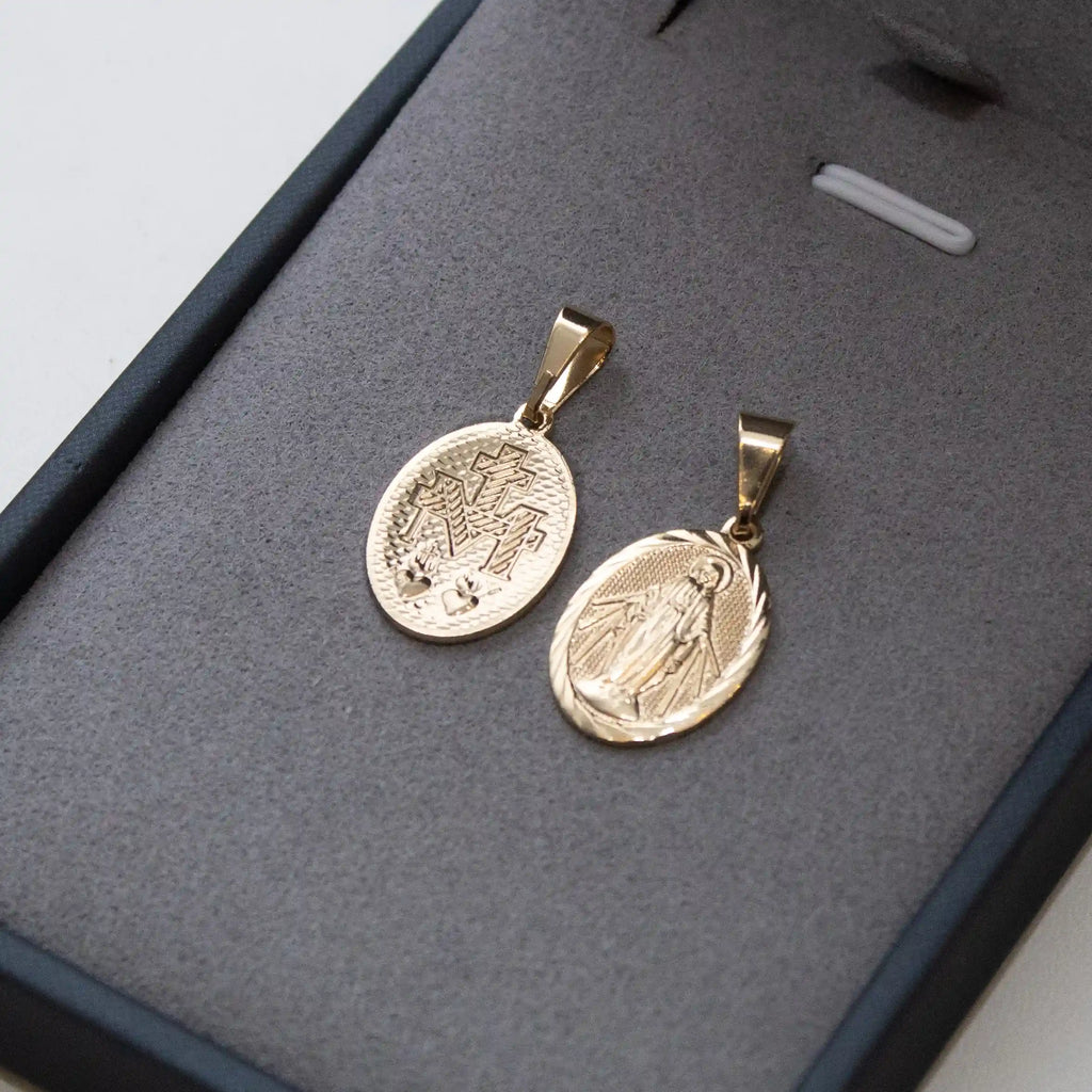 Deixe-se encantar pela beleza e sofisticação do Pingente Nossa Senhora das Graças Banhado a Ouro 18k. Sua delicadeza e elegância, banhadas em ouro 18k, trazem a proteção e as bênçãos da Nossa Senhora das Graças para o seu dia a dia. Aproveite a sua fé com um toque de luxo e exclusividade.