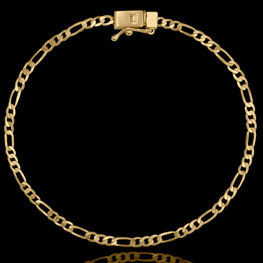 Adicione elegância e sofisticação com a pulseira modelo Fígaro 3x1 de 3mm, produzida à mão e banhada a Ouro 18k maciço. A pulseira apresenta um fecho Gaveta que é prático e garante mais segurança.