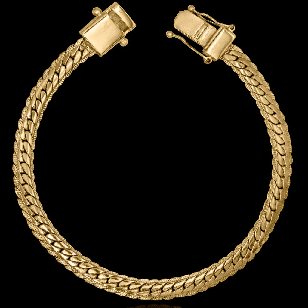 Esta pulseira Snake de 6mm, banhada a ouro 18k, combina design elegante com durabilidade. Seu acabamento refinado proporciona brilho intenso, enquanto a textura diferenciada acrescenta sofisticação a qualquer visual. Uma peça versátil que valoriza seu estilo com exclusividade e requinte.