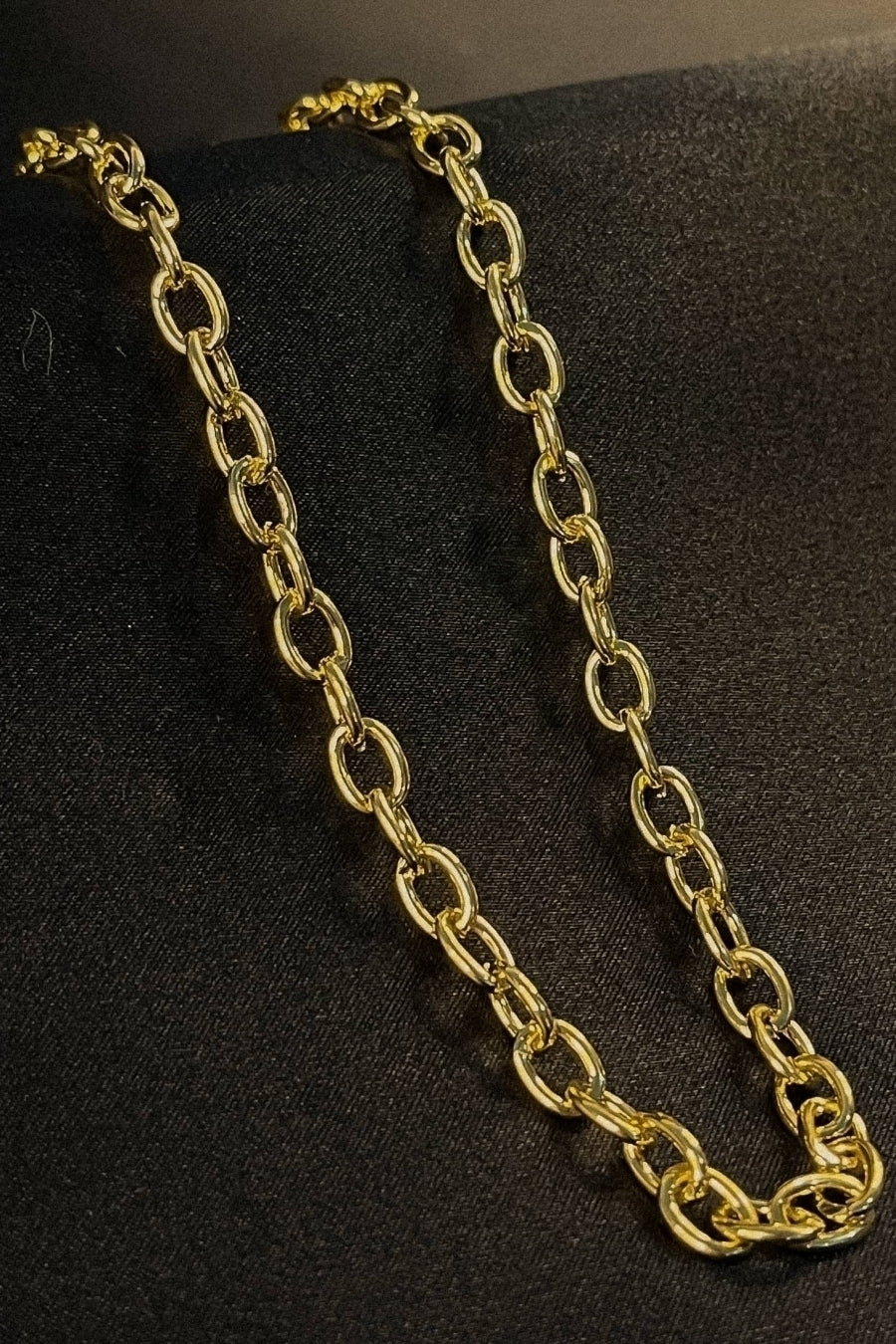 A Choker Corrente Com Elos Ovalados Banhada em Ouro 18k é uma peça versátil e moderna. Esta choker apresenta uma corrente com elos ovalados banhada em ouro 18k, criando um visual delicado e estiloso ao redor do pescoço. Perfeita para adicionar um toque de sofisticação e charme aos seus looks, esta choker é uma escolha elegante para diversas ocasiões.