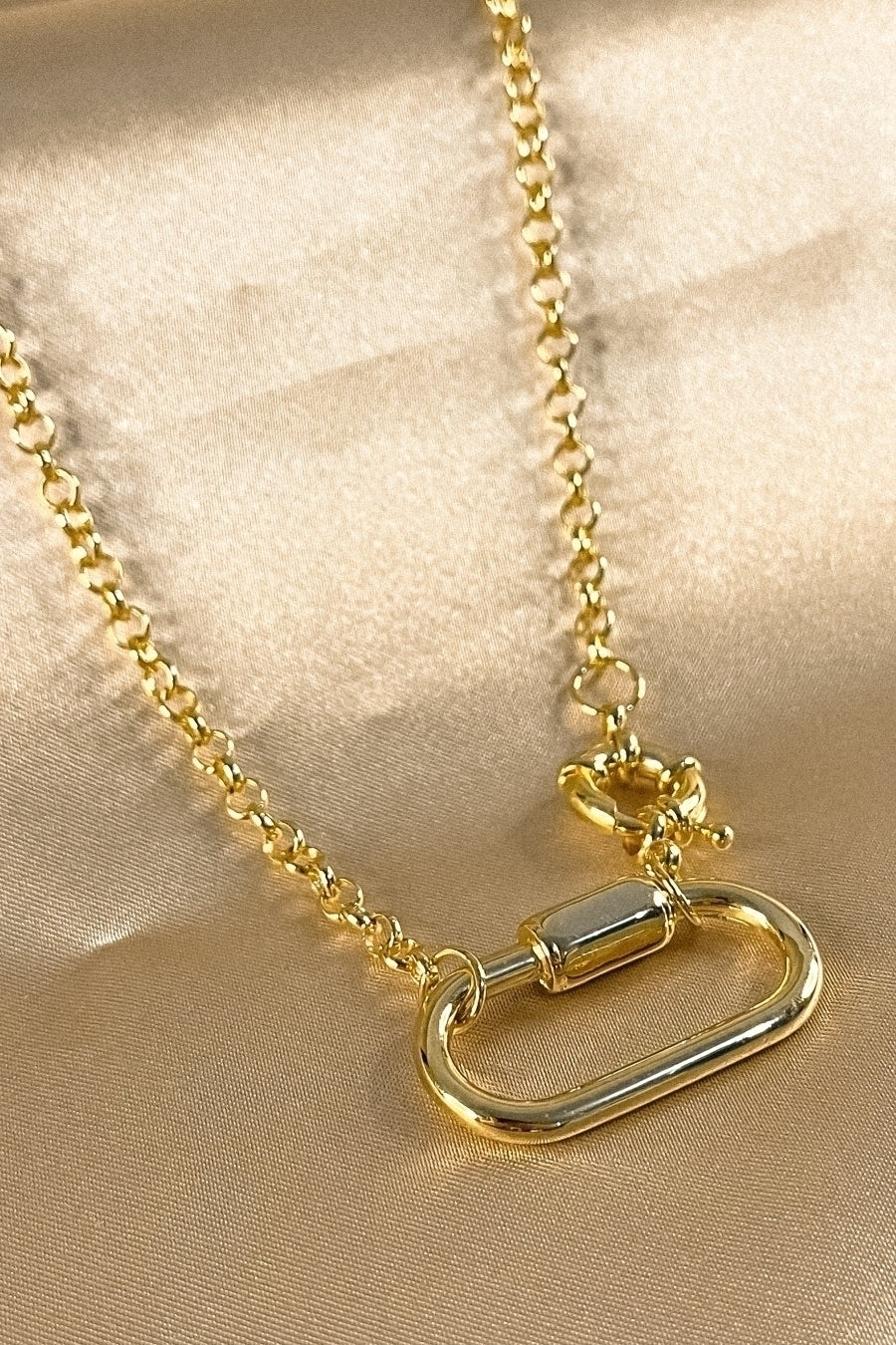 Este colar apresenta uma corrente robusta de elo largo, complementada por um fecho boia e mosquetão banhados em ouro 18k. O design robusto e elegante oferece um visual moderno e sofisticado, perfeito para quem busca uma peça statement para complementar seu look. Ideal para ocasiões especiais ou uso diário, este colar é uma escolha versátil e estilosa.