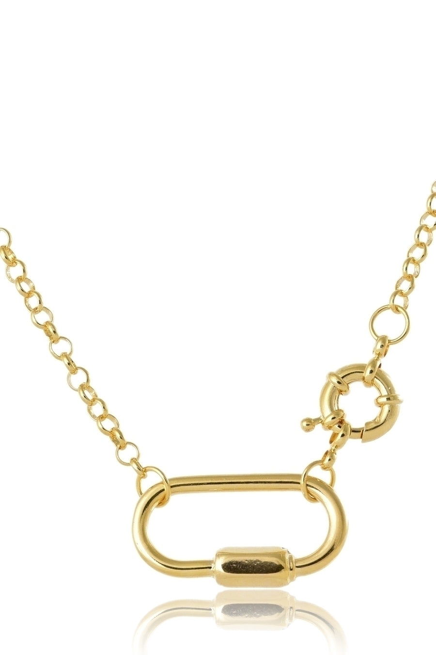 Colar Corrente de Elo Largo com Fecho Boia e Mosquetão Banhado em Ouro 18k