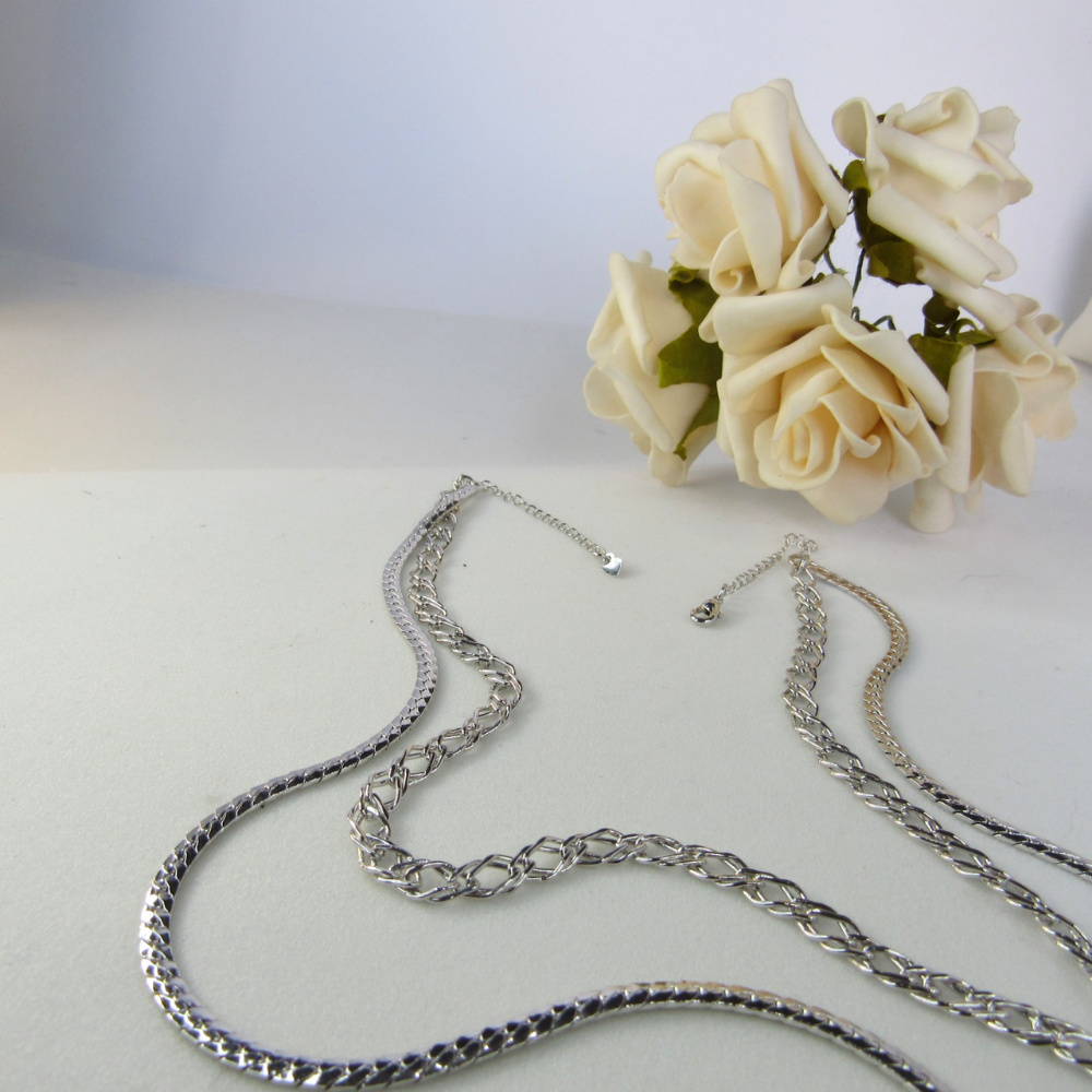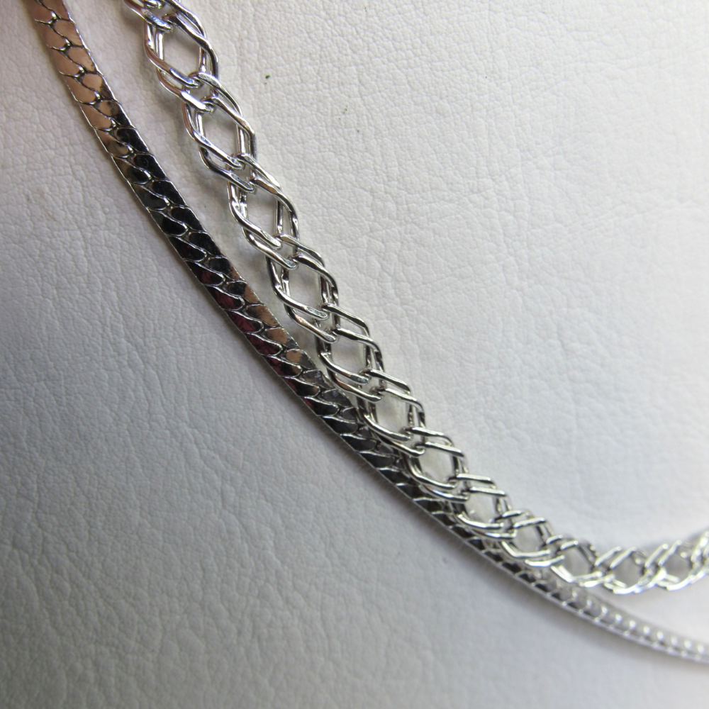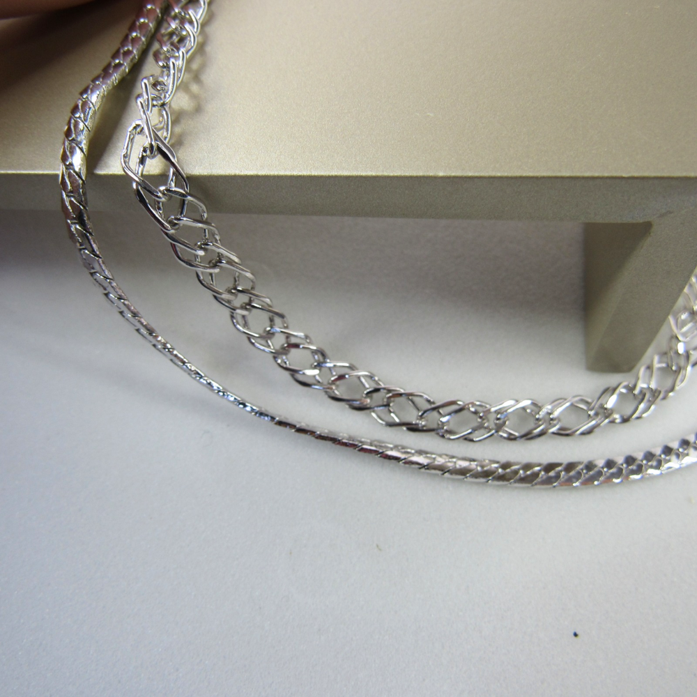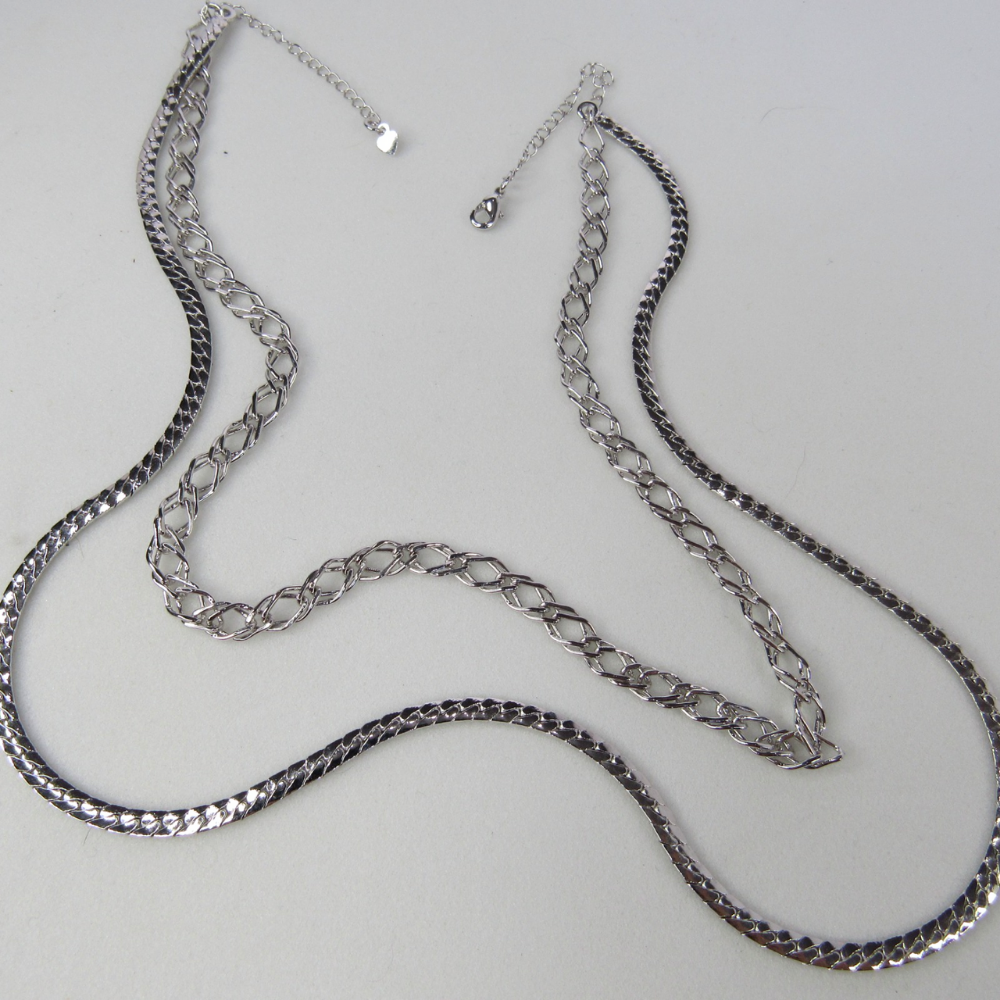Colar Duplo com Correntes Grossas Banhado em Ródio Branco