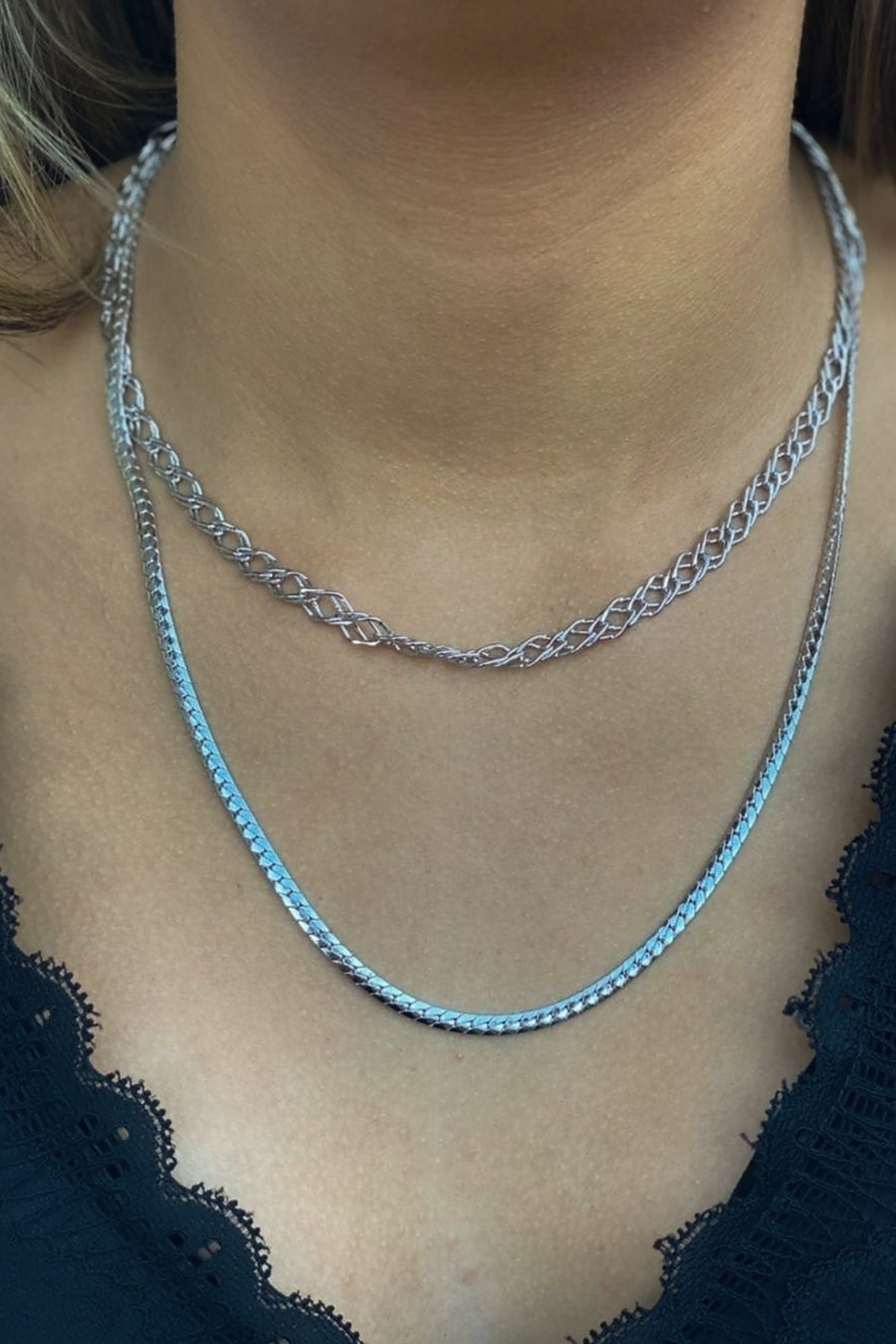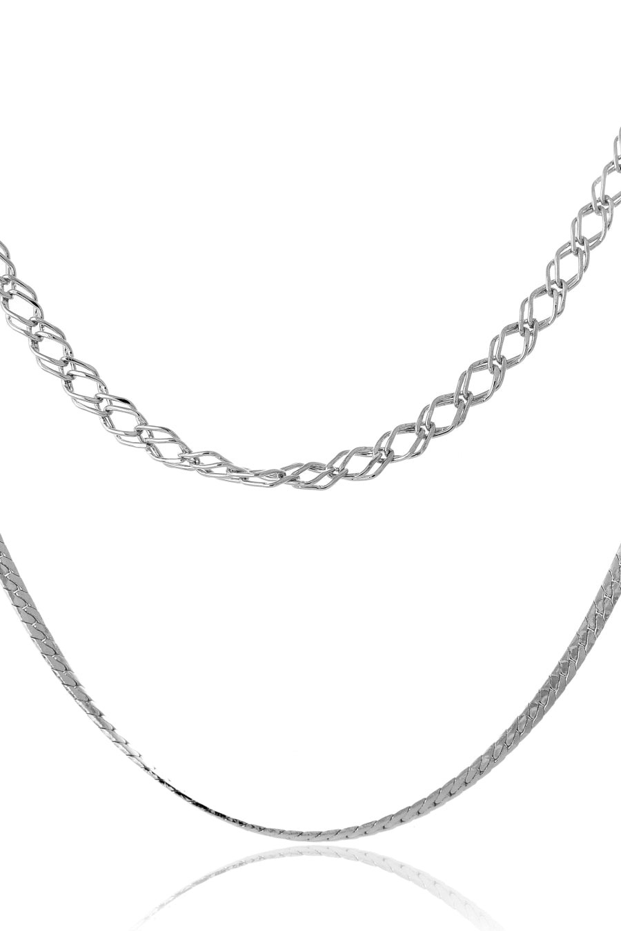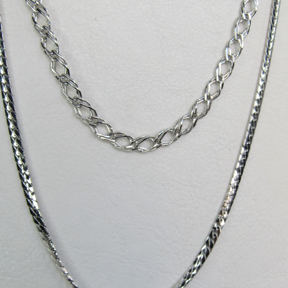Colar Duplo com Correntes Grossas Banhado em Ródio Branco