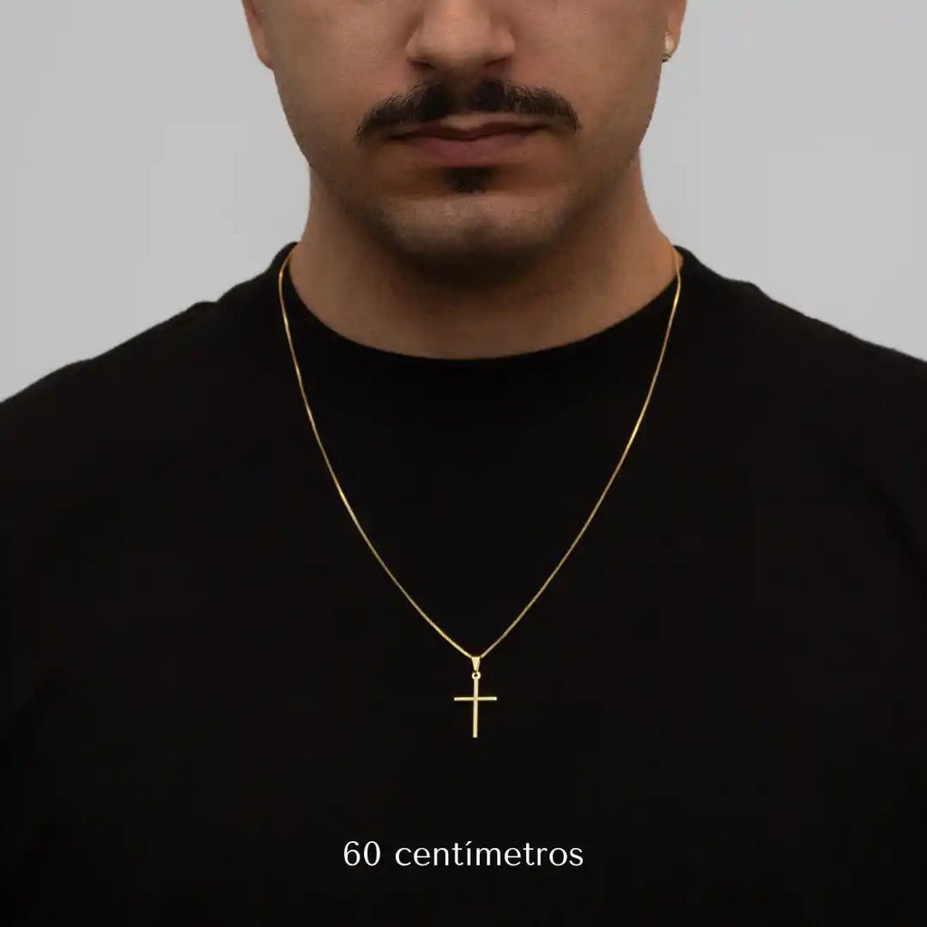 Elegancia discreta para el hombre moderno. Este conjunto minimalista incluye una cadena veneciana de 1 mm con un colgante de cruz lisa, ambos meticulosamente chapados en oro de 18 quilates. La combinación perfecta de sofisticación y espiritualidad, ideal para complementar cualquier look con un toque de refinamiento dorado.