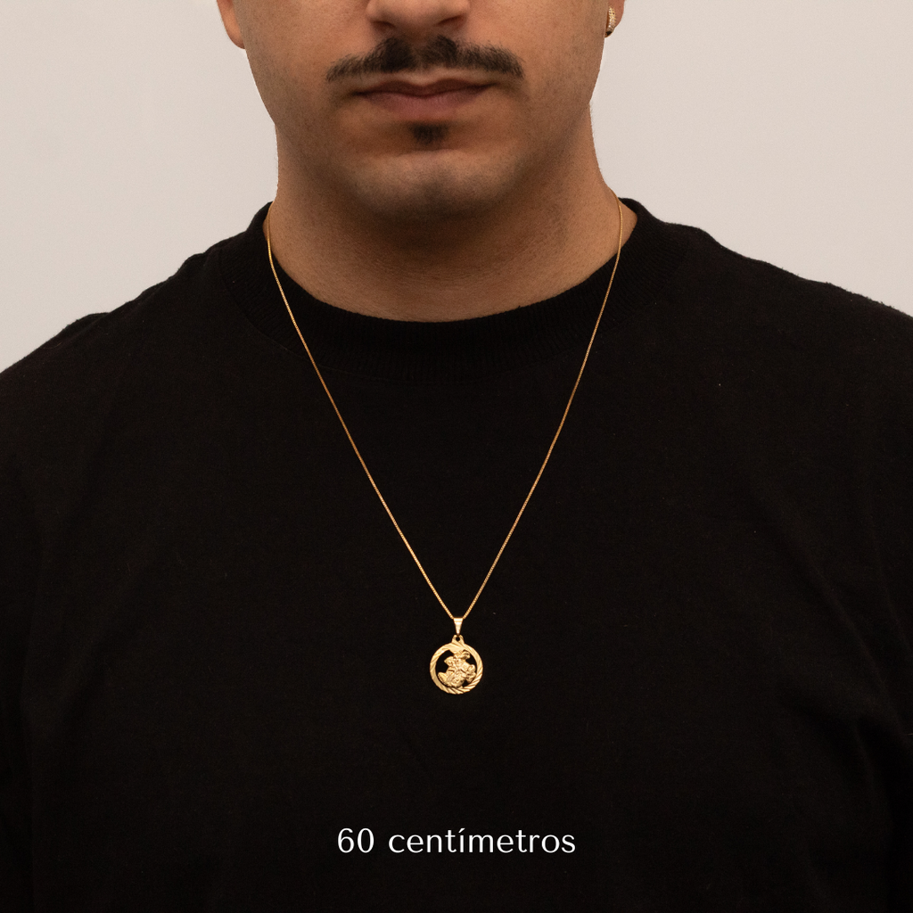 Este conjunto incluye una delicada y elegante cadena veneciana de 1 mm, combinada con un detallado colgante de San Jorge, cuidadosamente bañado en oro de 18 quilates. La pieza combina sofisticación y protección, realzando tu estilo con un toque refinado que realza la tradición y el refinamiento en cada detalle. Ideal para quienes buscan joyas significativas con un acabado premium.