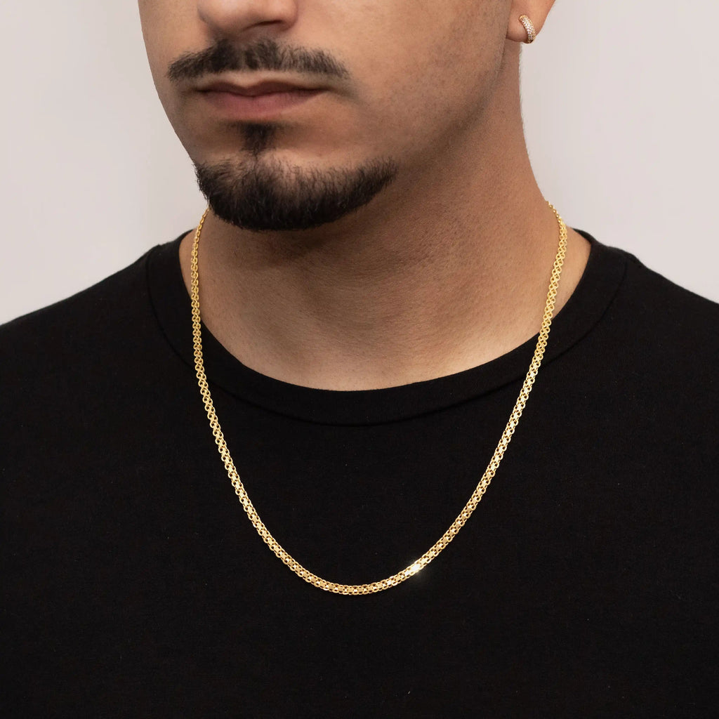 Añade elegancia y sofisticación con la cadena de doble candado de 3,5 mm, hecha a mano y bañada en oro macizo de 18 quilates de 10 capas, lo que garantiza una gran durabilidad. La cadena cuenta con un cierre de cajón para mayor practicidad y seguridad.