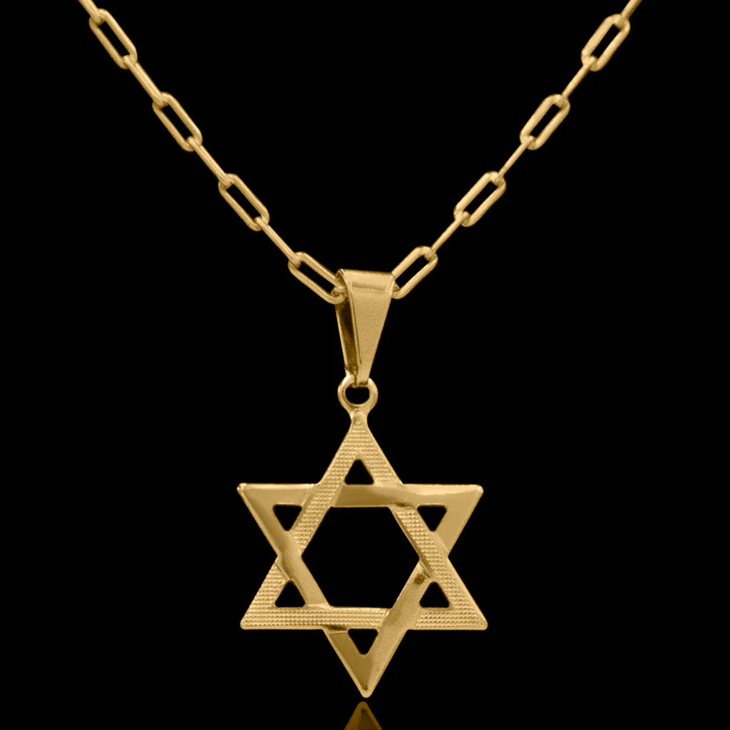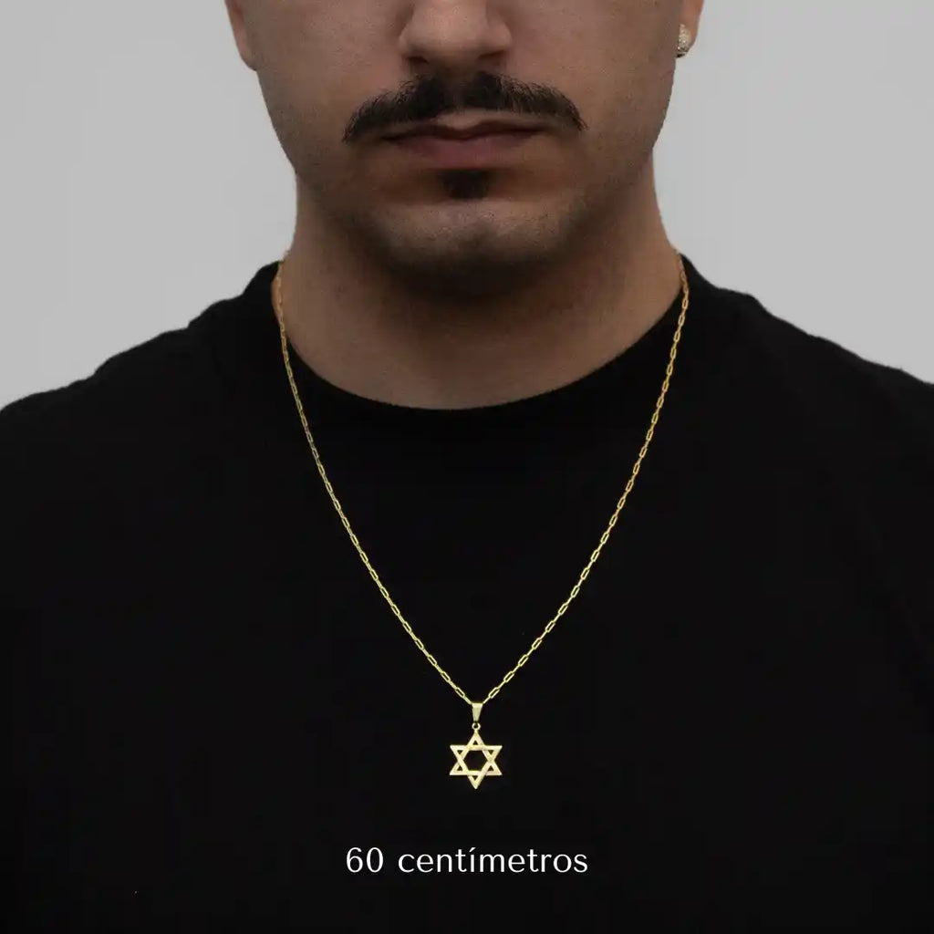 Elegante cadena Cartier de 2 mm con colgante de Estrella de David, meticulosamente chapada en oro de 18 quilates. Esta sofisticada pieza combina el diseño clásico de la cadena Cartier con el simbolismo atemporal de la Estrella de David, ofreciendo un accesorio refinado que complementa cualquier ocasión con un brillo duradero y un significado cultural.