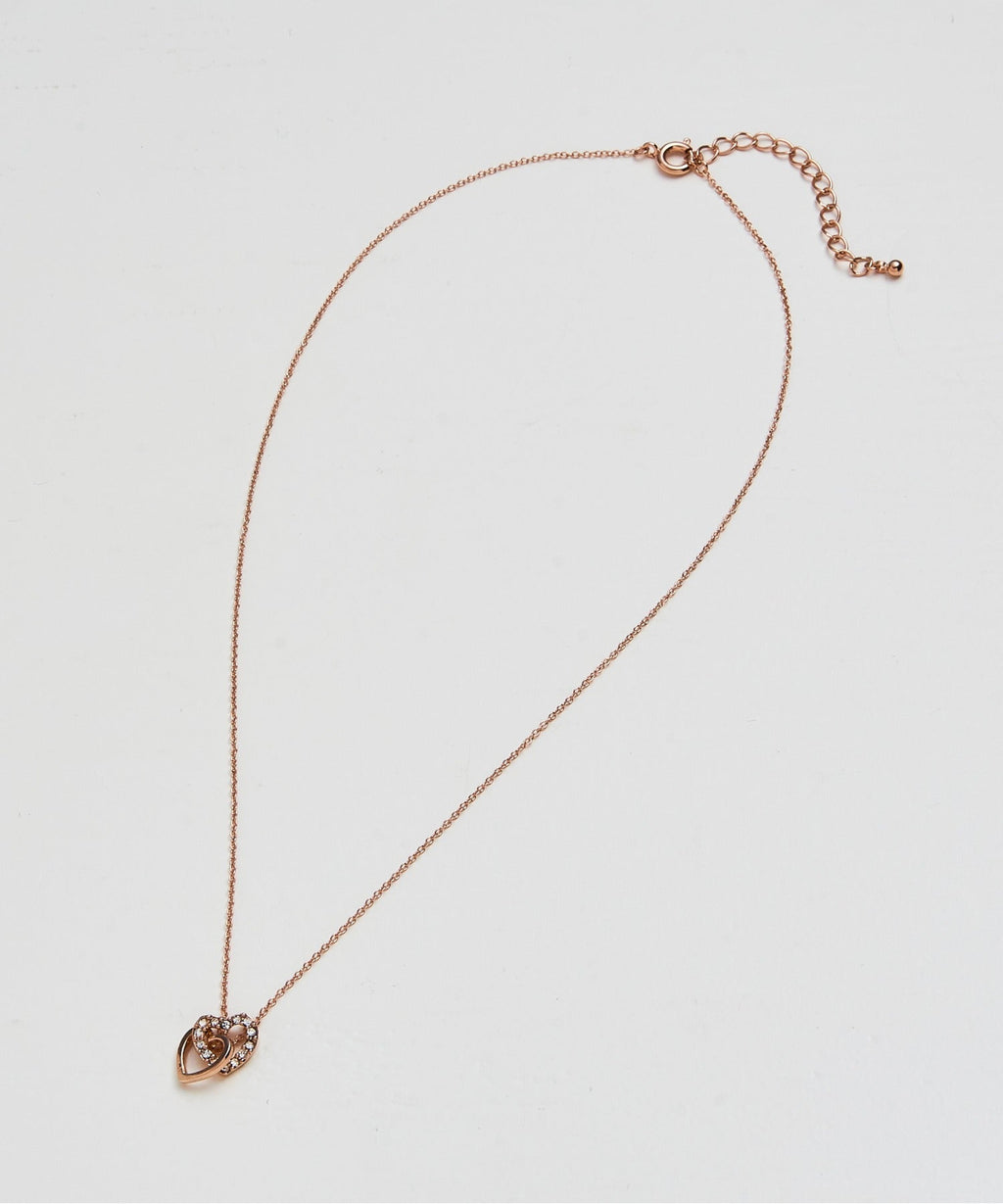 MAGASIN DE MODE Chou Chou Necklace Nickel-Free Double Heart metal Stone Petit Necklace OSWY